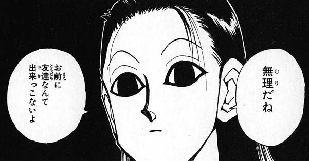 Il risultato è un aggregato di individui che, idealmente, ha una natura fortemente compatta e comunitaria30, in cui i membri si identificano in un ruolo e provano fiducia solo per gli altri membri del gruppo, distanziandosi da strutture sociali più ampie. In un contesto simile è facile vedere come i membri della Brigata non provino alcun tipo di tendenza emotiva positiva verso gli esterni. Il lato più affascinante e profondo della questione si ha, però, dopo il rapimento di Chrollo. In quel caso il Ragno si spacca in due sottogruppi con opinioni differenti, tra chi vuole seguire gli ordini del capo (cosa che porterebbe alla morte di Chrollo) e chi vorrebbe sottostare alle regole dello scambio di ostaggi. Questa complicazione ulteriore è perfettamente in linea con la teoria che abbiamo presentato: nonostante esistano delle forti uniformità all’interno di un gruppo, è impossibile che i singoli individui non abbiano idee, desideri e necessità differenti.